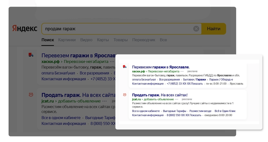 Реклама показывается на введенный пользователем запрос в поисковую строку.
